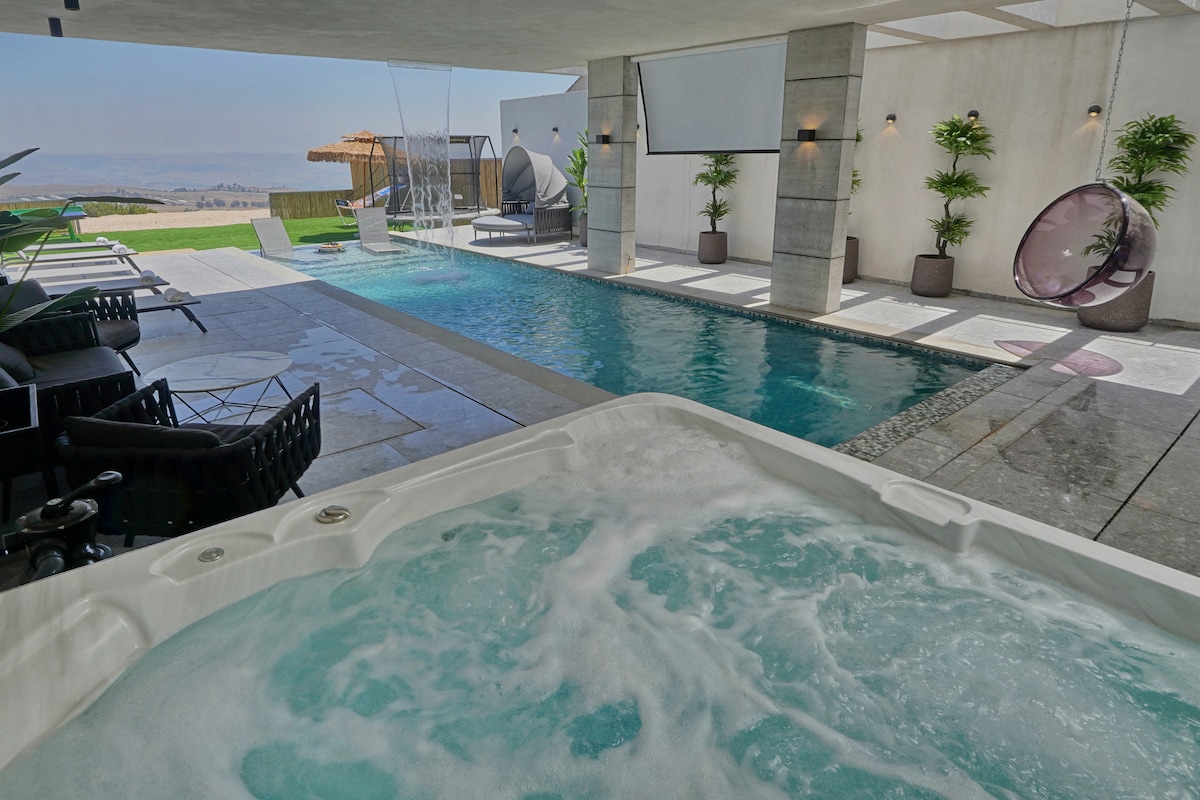 A geodesic dome located in an olive grove at the foot of the mountain in a private and quiet area. The house is wide, spacious, modern and special. There are strong ACs, a fully equipped kitchen, espresso machine, microwave, washing machine, an outdoor seating area with a BBQ, and a pool. The surrounding area is beautiful with natural springs and hiking trails. The Sea of Galilee is only a 10-minute drive away. This house was hand-built by us with love&care. We are happy to share it with you!