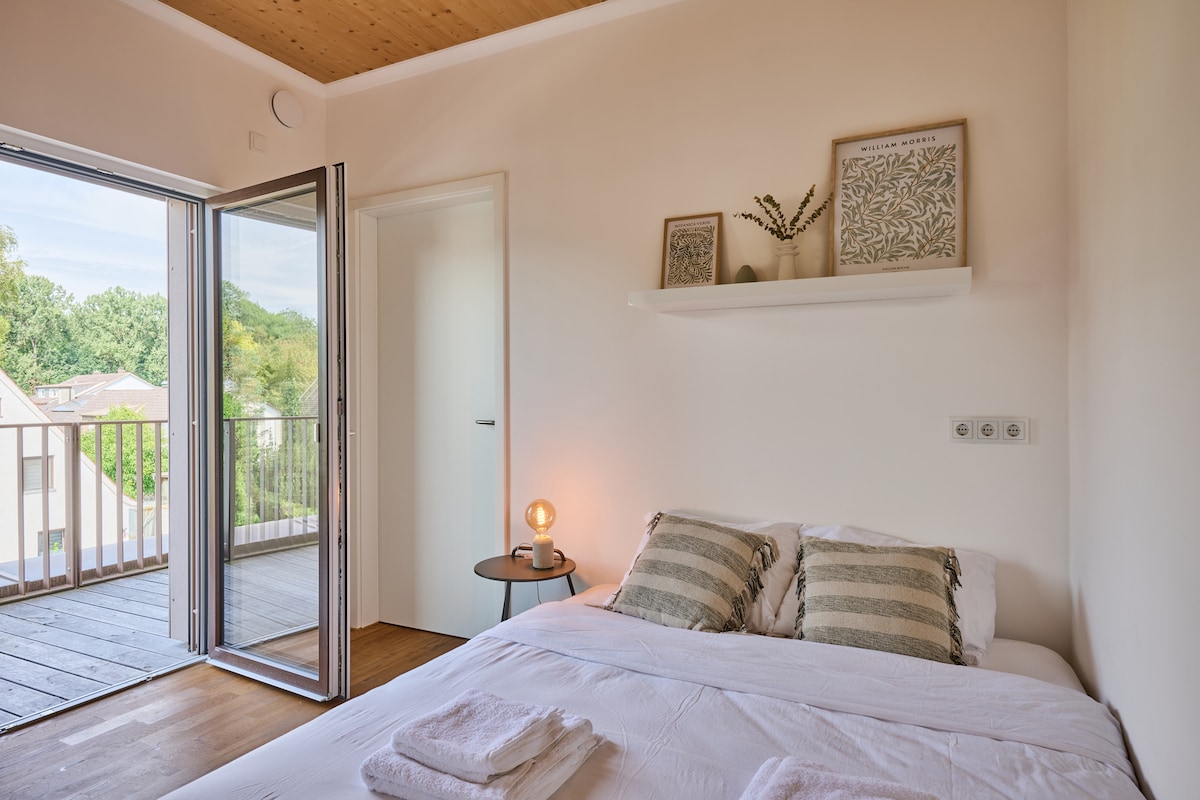 Apartamento ático de lujo de 112 m2 perfectamente ubicado cerca de la antigua ciudad de Freising, Munchen (aeropuerto) y el río Isar. Apto para hasta 6 adultos. Lo más destacado: conexión→ perfecta desde y hacia el aeropuerto de Múnich y MUC → 2 dormitorios con cómodas camas dobles + sofá cama grande Estacionamiento → subterráneo con 2 plazas de estacionamiento privado (1 estación de carga) Internet → de alta velocidad y televisión inteligente con Netflix → Gran terraza en la azotea Baño → grande con bañera de lujo → Cocina moderna para el café→ NESPRESSO