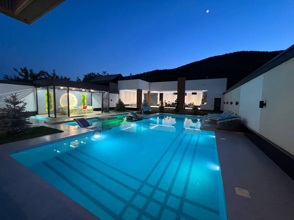 Наша вилла находится в самом уютном а также в идеальном расположение для тех кто любитель лыжного курорта а также круизного курорта, наша вилла построено так чтобы вы отдыхали с комфортом все есть мангал для шашлыка зеленое зона большой бассейн внутренний а также внешний турецкий хамам бильярд игровая приставка 3 поколение колонка для музыки и активного отдыха.