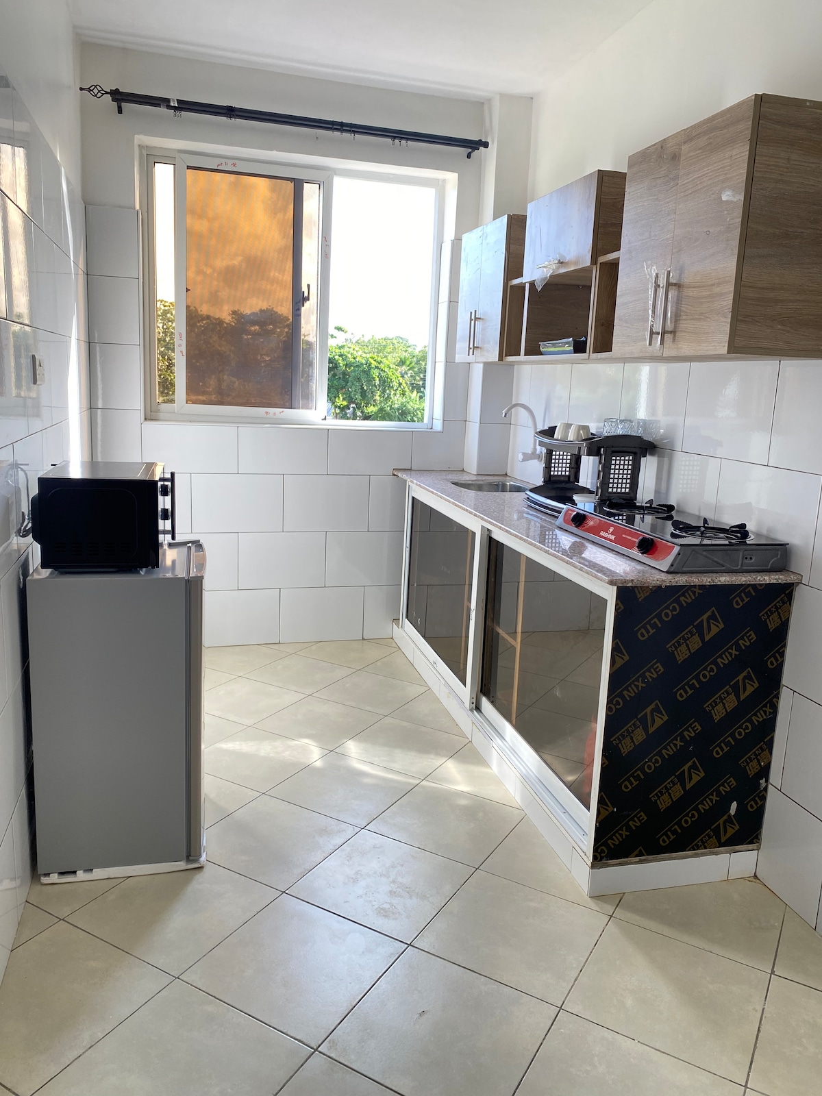 Have a comfy stay at this modern 1BR apt on the 2nd floor. It’s located to almost everything +5mins drive to Nyali + 7 mins drive to Haller Park +20mins drive to airport +free unlimited fast WiFi +free electricity usage + Coffee machine + smart 55” HDTV + Garden view + pool + 24/7 manned security Overlooking the Garden, in a quiet and family friendly neighborhood, you will experience cool breeze in the evening or catch the sunrise at our Garden. We cant wait to host you, book us today!