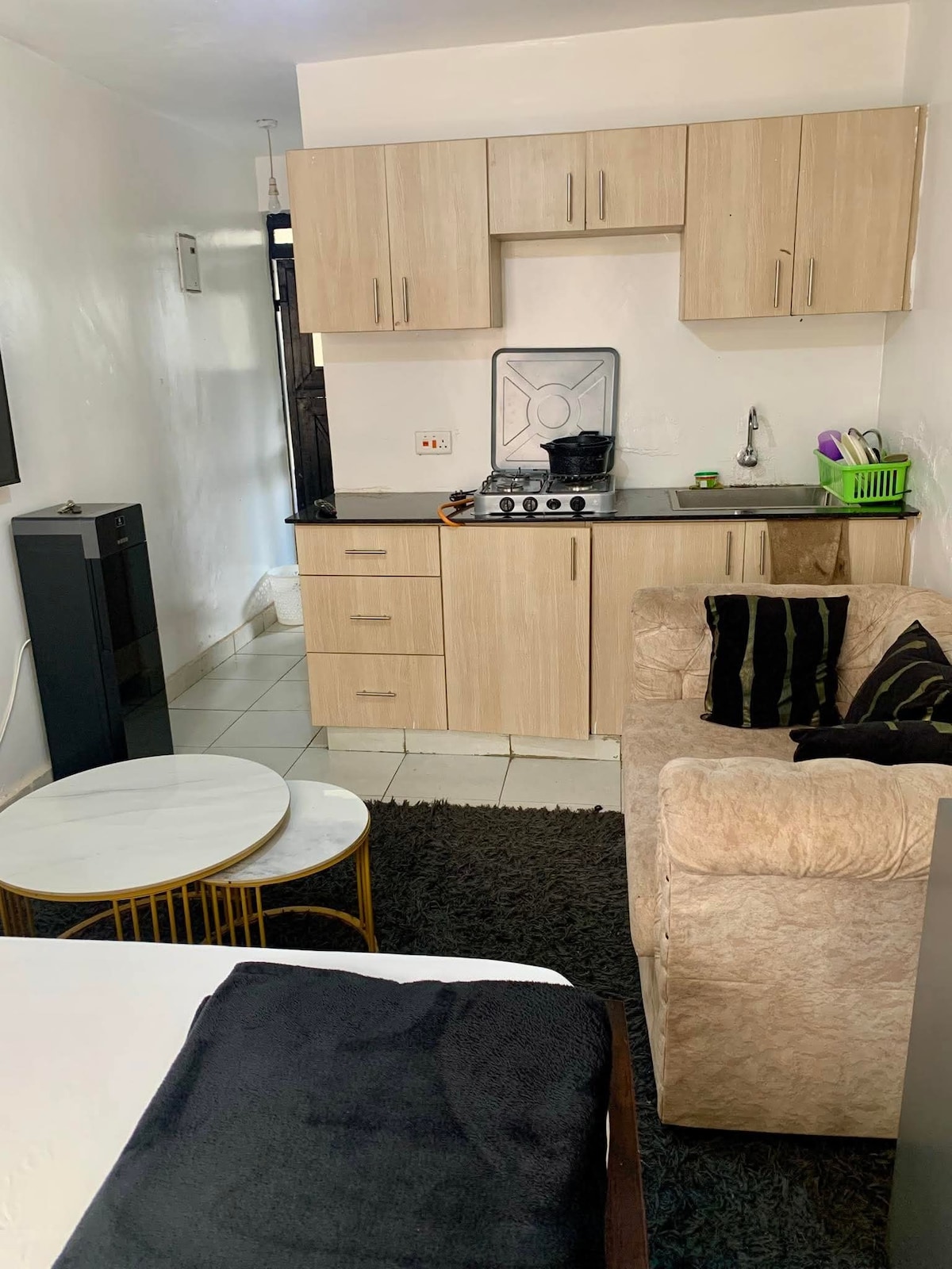 Disfruta de una experiencia elegante en este céntrico apartamento tipo estudio en Milimani, ciudad de Kisumu, junto a Jelaram. Cerca de servicios esenciales como centros comerciales, aeropuerto, playa/lago. Estacionamiento muy limpio y seguro con seguridad las 24 horas.