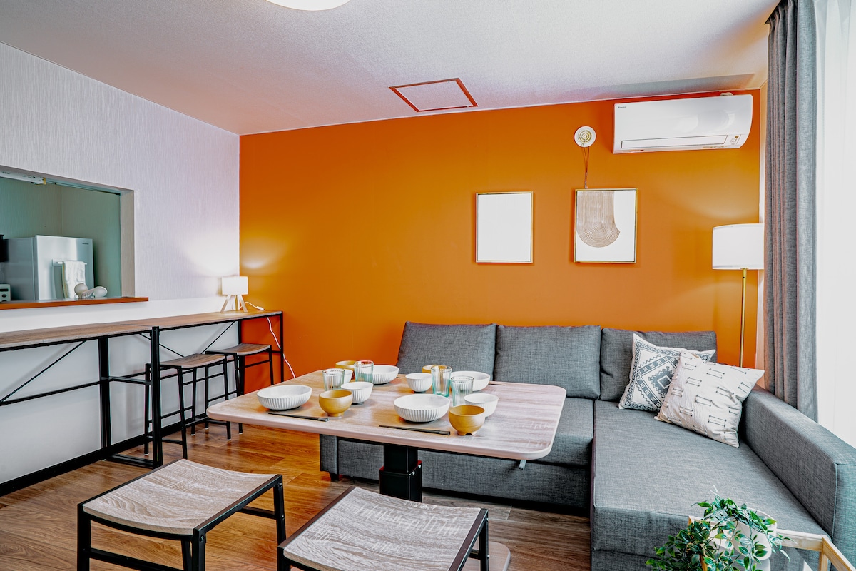 Includes 5 bedrooms plus a large living area. Stylish & Functional Plenty of storage ensures a clutter-free stay, even for large groups. Social & Private Spaces Gather together in shared areas or relax in your own room. 120-inch screen Enjoy movies with a projector . Nearby supermarket. Perfect for families or groups! BBQ & private sauna. [Option Set: ¥24,000] *There is only one air conditioner in the living room. (There are multiple electric fans.) Heating is provided in each room.