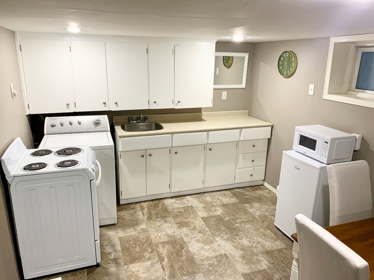 GRAN DESCUENTO DEL 20 % PARA ESTANCIAS MENSUALES Apartamento tipo estudio recién renovado en la planta baja decorado pensando en la comodidad y el estilo. El espacio incluye una cocina totalmente equipada y un baño de 3 piezas. El apartamento se encuentra en un barrio tranquilo cerca del mercado de agricultores de St. Jacobs, el teatro de St. Jacobs, dos universidades, tiendas, estadios, biblioteca y centros de recreación. A 8 km del Centro en la Plaza. El anfitrión estará allí para recibirte y responder a cualquier pregunta que tengas.