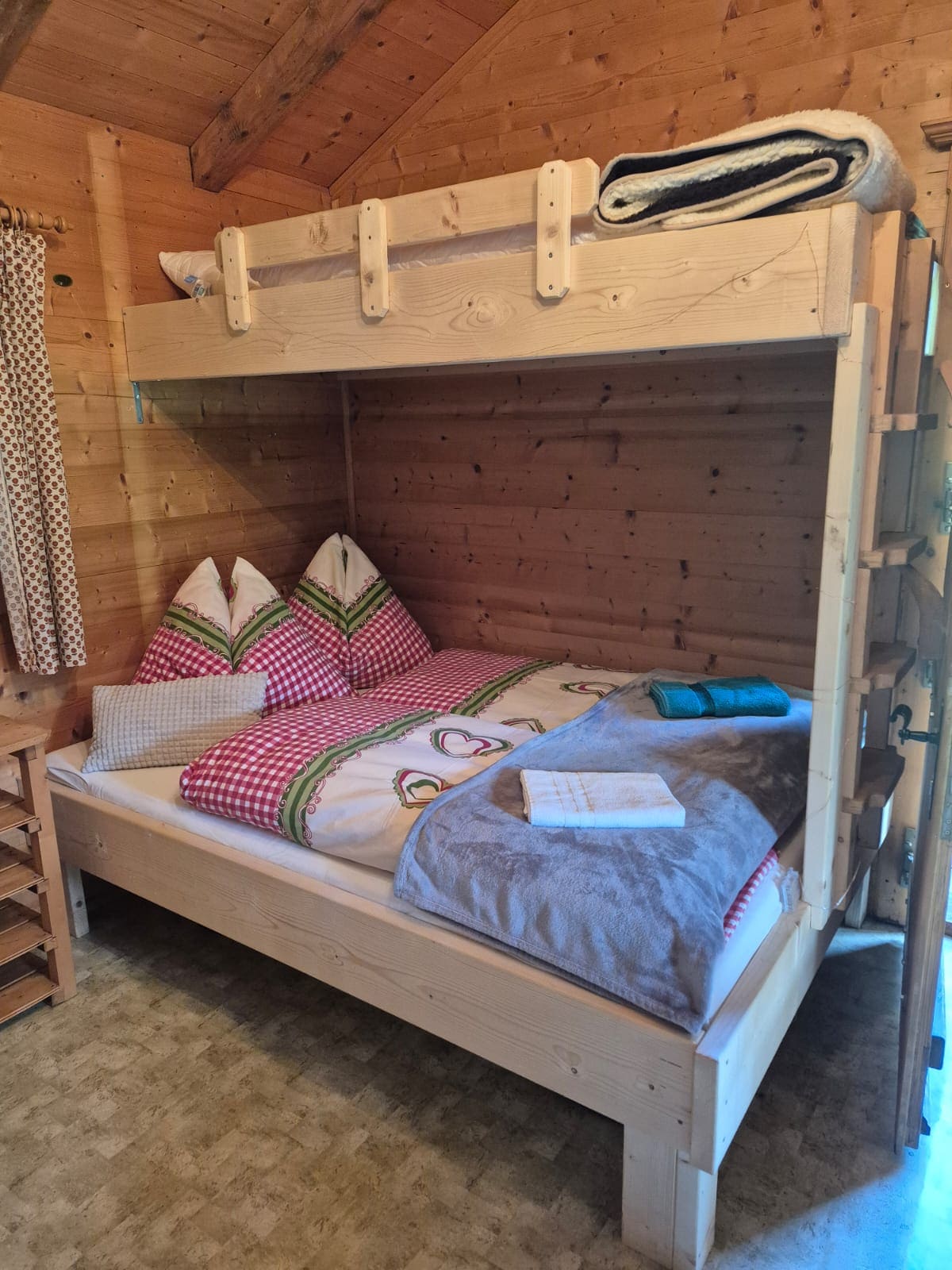 Presentamos la encantadora y acogedora casita «Auszeit», enclavada en las hermosas montañas tirolesas. Esta casa única y ecológica está construida con madera 100% procedente de nuestro propio bosque y combina muebles tradicionales tiroleses con un diseño escandinavo sencillo y moderno. Experimenta lo último en comodidad y relajación en este alojamiento especial y extraordinario, diseñado con amor y cuidado. ¡Reserva tu estancia ahora y escapa a la tranquilidad de las montañas en invierno o verano!