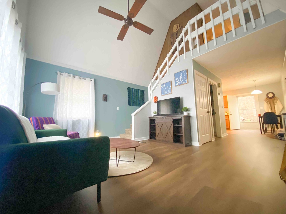 Welcome to Hen at Bluff Creek-a private oasis with a fresh, bold aesthetic that makes this mountain industrial farmhouse your ideal quiet log cabin getaway. Nestled amongst mature trees with a view of nature & a seasonal creek, Hen is your 1 bedroom loft 1.5 bath cabin tucked away from an active Smoky Mountains life only mins to downtown Pigeon Forge. Enjoy s'mores by the fire pit or a relaxing soak in the hot tub. Guests rave about the cozy & romantic feel "A PERFECT, SERENE CABIN FOR TWO"