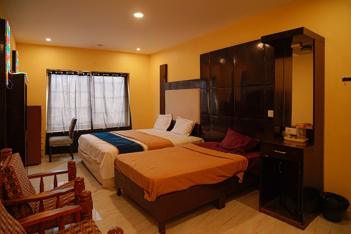Dr Misty Hub is designed for comfort, space and convenience, perfect for families and group travellers. The suite features a spacious master bedroom, additional sleeping space, a modern attached bathroom, and a comfortable living area for relaxing together. Enjoy high-speed WiFi, Android TV, a fully equipped kitchen and warm interiors that feel like home. Large windows bring in fresh hill air and misty views, creating a peaceful stay. Ideal for families seeking privacy.
