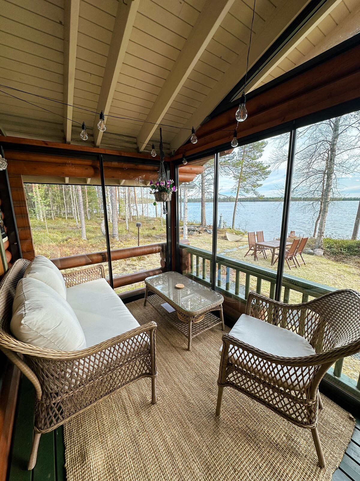 Cabaña de madera atmosférica y espaciosa en una ubicación tranquila a orillas de un lago limpio. Equipamiento completo y una cocina totalmente equipada, que incluye lavavajillas, estufa, microondas, cafetera, etc. La cabaña también tiene, por ejemplo, wifi, TV, sauna, baño interior y lavadora. *ROPA DE CAMA PROPIA O ALQUILER €25/PERSONA*. Las mascotas se acordarán por separado. Un gran lugar para hacer senderismo, esquiar, nadar, pescar, recoger bayas o pasear en barco, dependiendo de la temporada. ¡Pregunta al arrendador sobre la posibilidad de alquilar un coche!