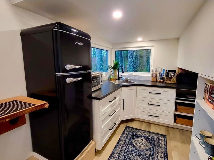 This Epic View (not so tiny) tiny house is truly a soul nourishing place. From its large expanse of south facing windows you can soak in the views of Kooteney lake and then enjoy the covered private deck with an outdoor bathtub! It has all the amenities to make a perfect retreat space including a Bose sound system, movie projector and yoga mat. From a comfy bed to artistic decor and a fully equipped kitchen, you are sure to want to stay forever.