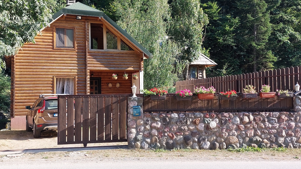 La cabaña es perfecta para relajarse en una ubicación atractiva pero tranquila con estacionamiento gratuito y patio. Está equipado con 2 televisores LCD, reproductor de DVD, TV vía satélite, estéreo, lavavajillas, lavadora, chimenea, utensilios de cocina, por supuesto, ropa de cama y toallas agradables, así como todos los artículos de tocador y otras necesidades que puedas necesitar en tus vacaciones. Dos restaurantes nacionales están a 2 minutos a pie. Wi-Fi rápido y aparcamiento gratuito incluidos. Posibilidad de realizar actividades vacacionales con nosotros:rafting, montañismo, etc.