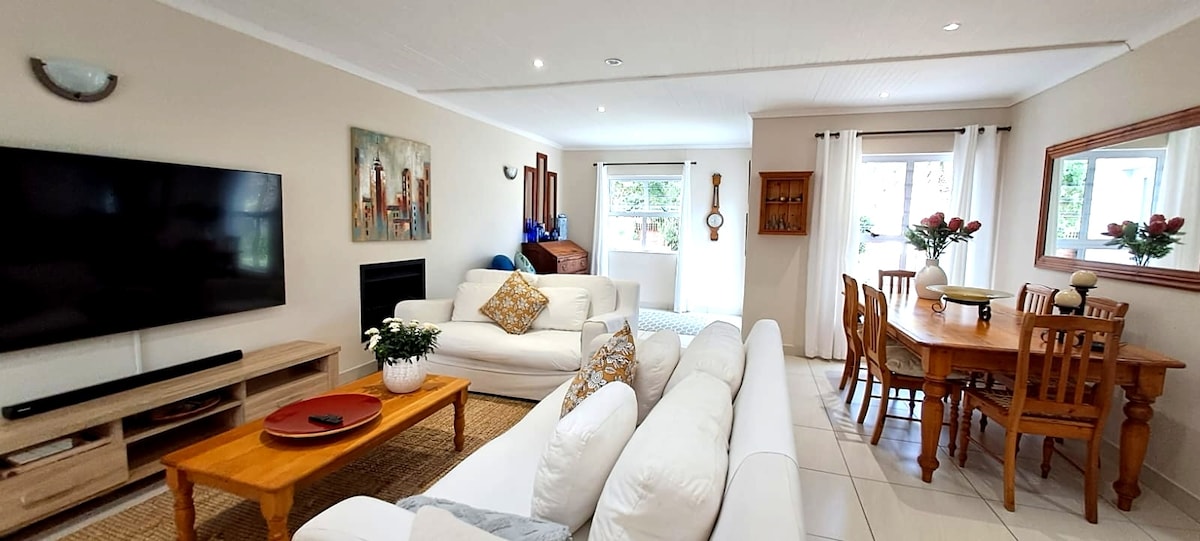 Pasea por un bosque costero, a 5 minutos a pie de la playa, hasta nuestra casa de campo recién reformada. Disfruta de total paz y privacidad en este espacio elegante y cómodo. Despiértate con el canto de los pájaros y duérmete con el sonido del mar. Observa el amanecer y el amanecer desde la cubierta protegida del viento rodeada de bosque y fynbos (finos arbustos y plantas autóctonas). Nuestro espacio muestra hermoso arte, arquitectura y diseño local. Esta propiedad forma parte de una finca ambiental privada y colinda con una reserva natural.