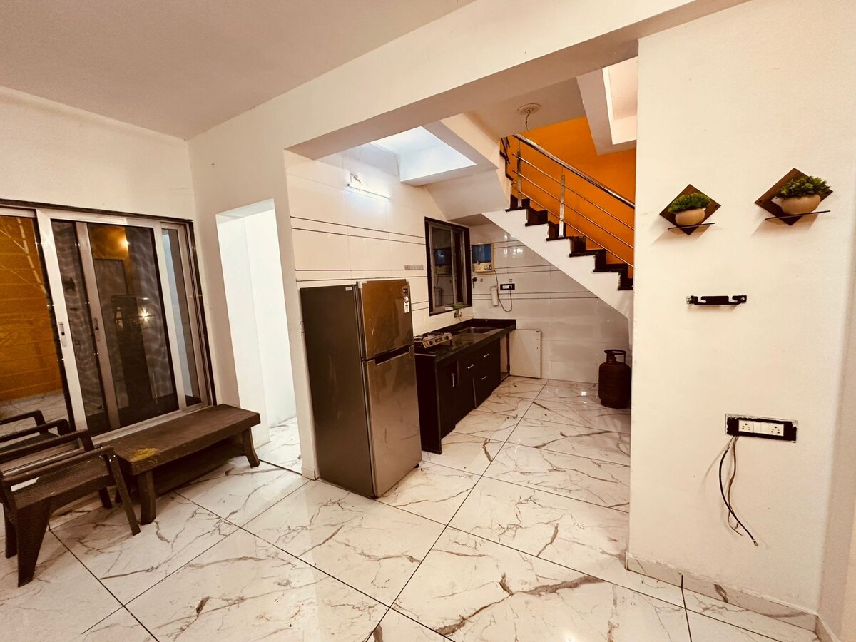 Airbnb is a warm, stylish home combining modern comfort with heritage charm. Spacious rooms, cozy décor, a peaceful patio, and bright living spaces make it perfect for families, groups, or work trips. Enjoy comfy bedrooms, clean bathrooms, a fully equipped kitchen, and inviting lounges. A calm, beautifully maintained stay designed for comfort, relaxation, and memorable moments. Distance Railway station - 9 km Airport - 12km Convention Centre- 10 km