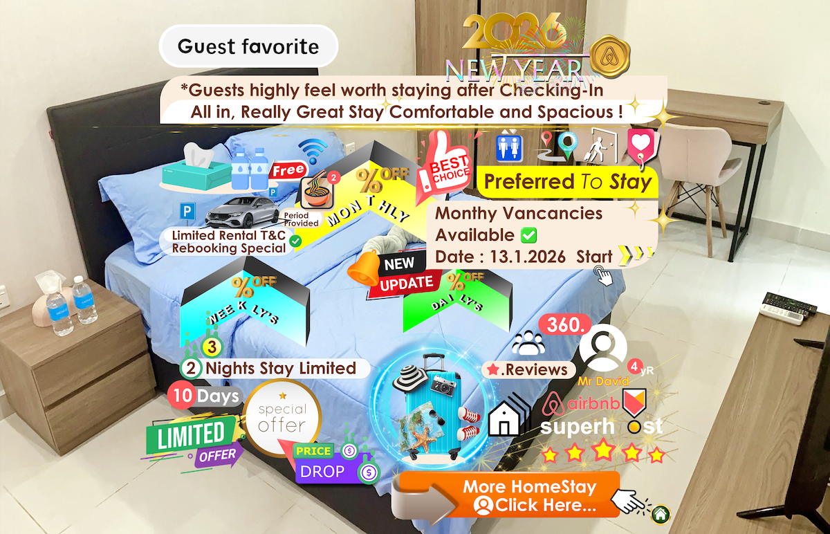 Forget worries in this spacious and serene space of muji style home stay at 12 level. ✅Unique & beautiful high sky, sunset, city view & peacefully quiet place. ✅Handpicked most comfortable bed no other homestay could provide. ✅Relaxation fun stay. ✅10 minutes drive to town. ✅15 minutes drive vivacit ❗Please inquiry for Parking lot if you need one as we have limited quota per month. For security purposes. A photo of your identity card is required.