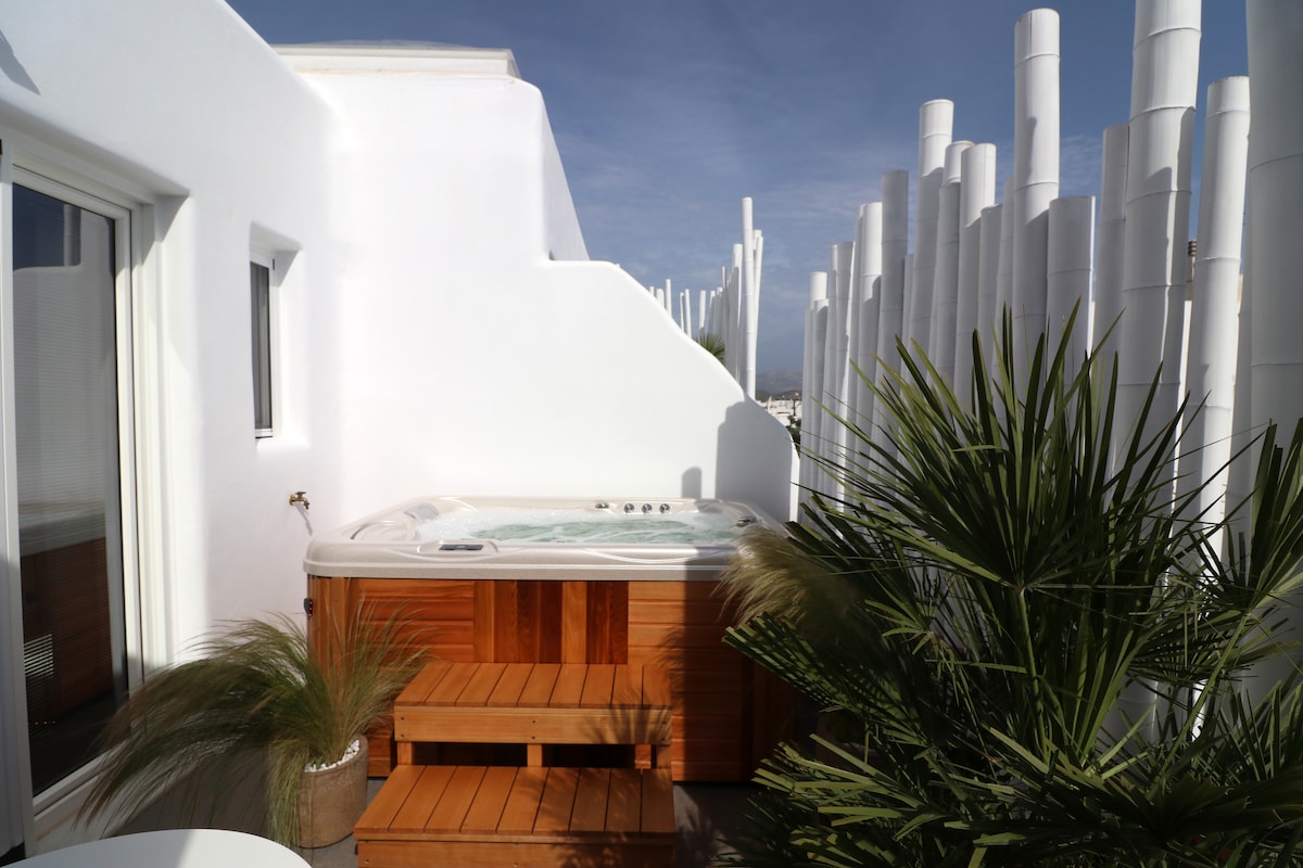 Bienvenido a un nuevo apartamento de cuatro dormitorios, bellamente diseñado y decorado, ubicado en el corazón de Naoussa. El mobiliario y la decoración están diseñados con colores blanco y arena y toques de madera natural, creando un ambiente relajante. Hay dos patios privados, uno con jacuzzi y mesa de comedor. Disfruta de una experiencia elegante.