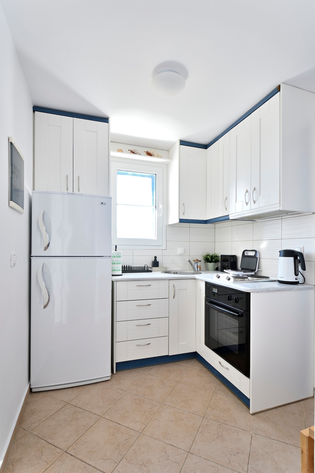 Casa de 50 M2 orientada al suroeste en la bahía de Yialos. Está equipada con: - Habitación con cama de 160x200, vestidor, terraza - Cuarto de baño con inodoro, lavadora - Cocina con placa halógena, horno, nevera/congelador, lavavajillas, hervidor de agua, tostadora y utensilios, cafetera y zona de comedor - Cocina exterior con plancha de gas - Sala de estar interior con dos bancos 180-190x90 que pueden servir como cama supletoria para niños, cuna. - Salón exterior con sofá