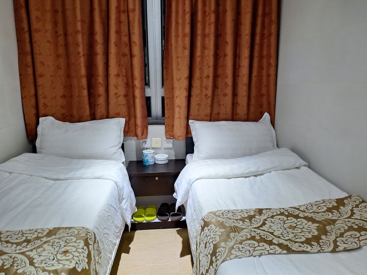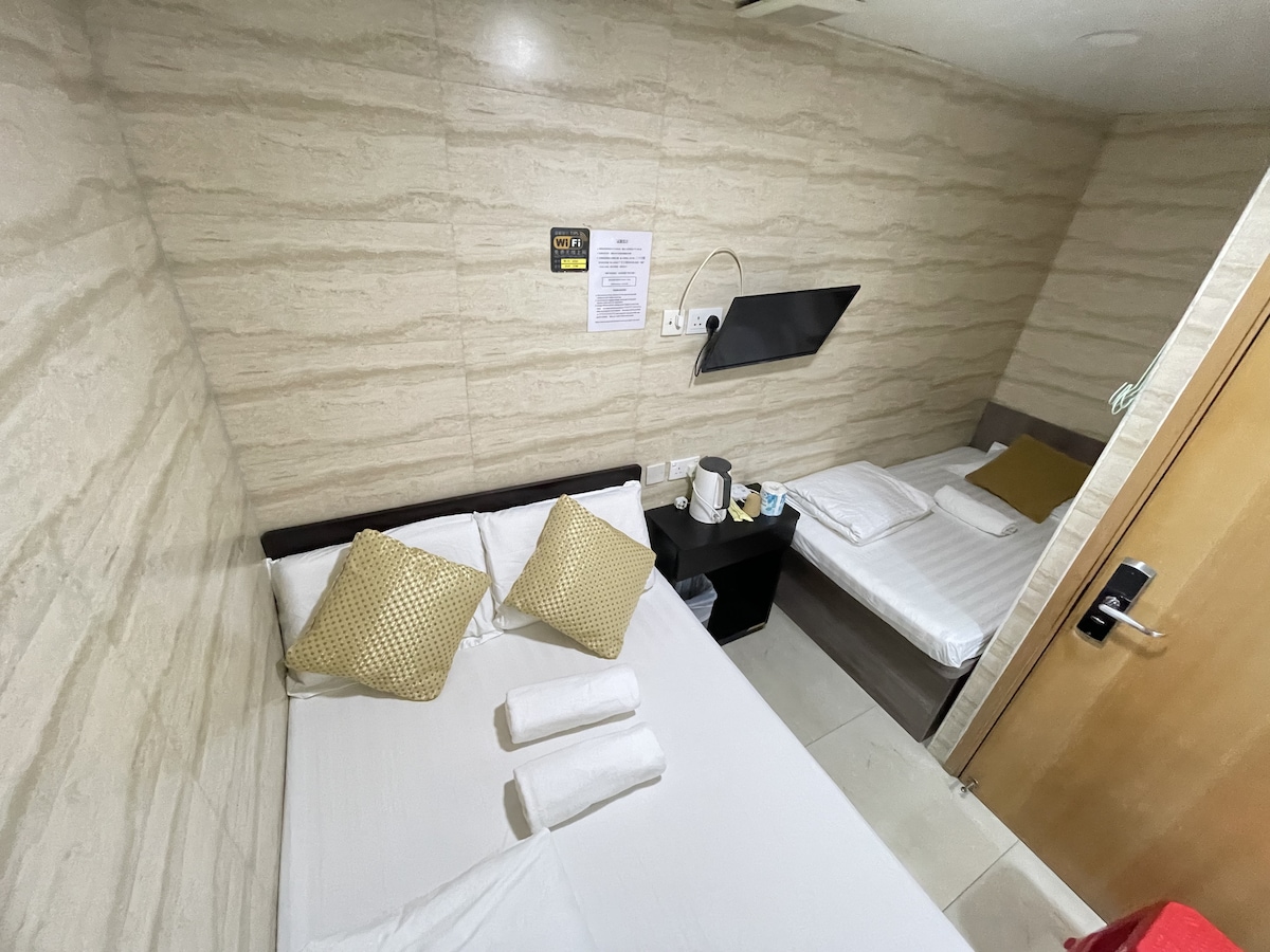 Quad3. Adecuado para viajes en familia.A tiro de piedra del metro de Mong Kok.Langham. La calle de las mujeres está cerca.Habitación para 4 personas, con baño privado, cálida y acogedora