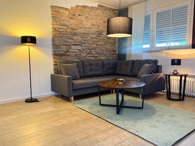 Bonito apartamento de 1 habitación (planta baja) en edificio antiguo con cocina americana y baño moderno y luminoso con ducha y ventana. La habitación tiene una cama doble (1,80 m), TV y wifi gratuito. Las toallas se cambian semanalmente y la ropa de cama cada 14 días. En el patio hay una zona de estar (para fumadores). Hay aparcamiento público gratuito en las calles de los alrededores. Buenas conexiones de transporte público (autobuses, a 2,5 km de la estación de tren de Neuss), tiendas y lavandería cerca.
