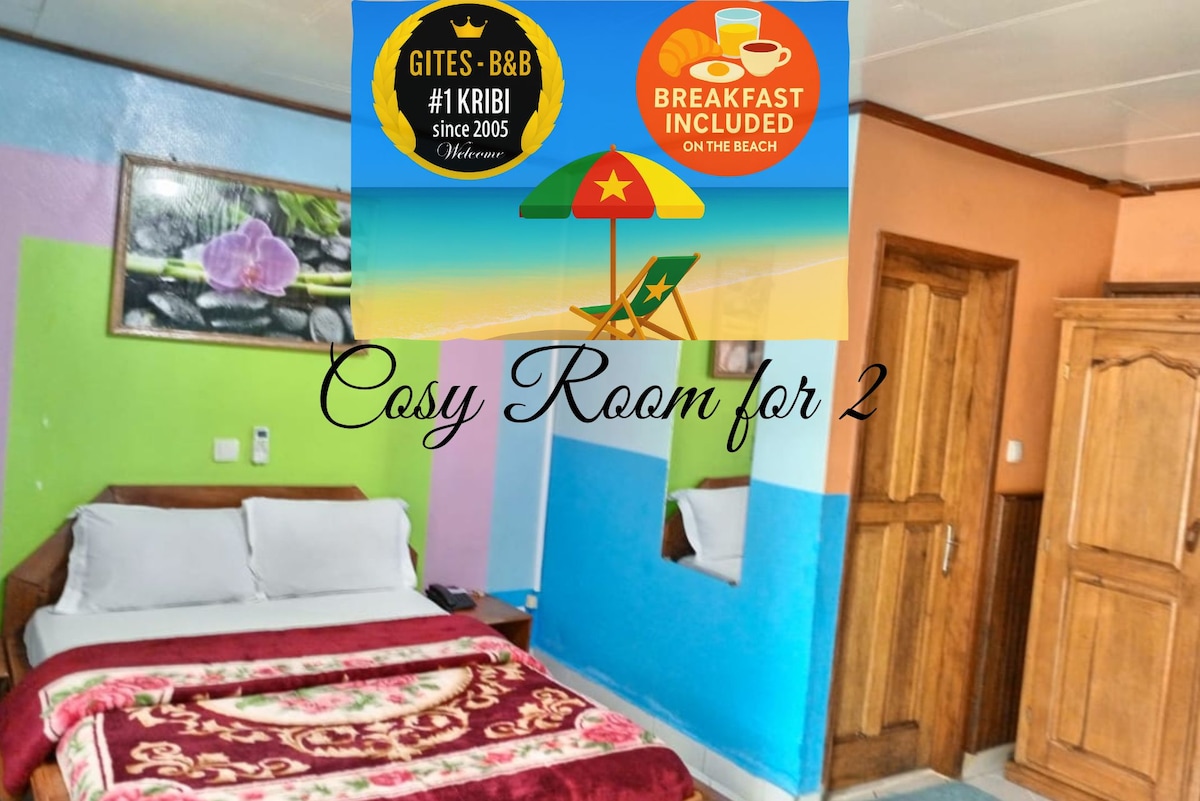 El "Deux Palmes Kribi" es adecuado para familias o grupos de hasta 10 personas y está convenientemente ubicado en la ruta N7. La playa se puede llegar a pie en unos 200 metros. Hay varias tiendas, bares y restaurantes de mariscos, así como un Delicatessen cerca. El centro de la ciudad está a unos 5 km de distancia. 3 dormitorios con baño compartido, 1 dormitorio con baño separado, una amplia cocina/sala de estar y la amplia terraza están disponibles para nuestros huéspedes.