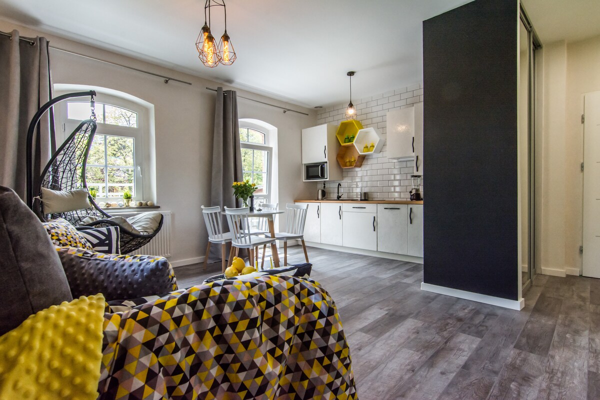 El apartamento WinyLove en Karpacz es un apartamento independiente de dos habitaciones con una superficie de 38 metros, encargado en 2018, ubicado en la planta baja del edificio Old Forge. El departamento está ubicado en una calle tranquila y encantadora en Karpacz Dolny, a solo 900 metros a pie del paseo principal. Nuestros huéspedes pueden estacionar su auto de forma gratuita en la propiedad.