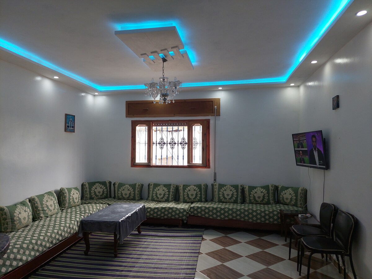 The apartment is located in a house in Hatba countryside near Plage Zahara (10 minutes away on foot), and Tanger Med Port (15 minutes by car). We provide a free parking (garage) for 3 big motorcycles maximum. We accept late check-in. We also offer payable lifts from and to Tanger Med Port if the number of guest is 4 or less (price not fixed). For pets, we unfortunately do NOT accept dogs.
