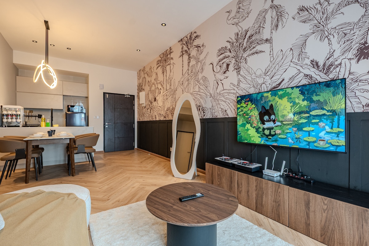 Private Luxury Suite | Walk to KSL Mall • Walking distance to KSL Mall • MUJI-inspired minimalist design • Private Jacuzzi for relaxation • Immersive cinema with surround sound • King-size bed with 12-inch premium mattress • Plush high-end sofa Designed for comfort, privacy, and quiet luxury. Ideal for couples, special occasions, or guests seeking a refined and uninterrupted stay in the heart of Johor Bahru.