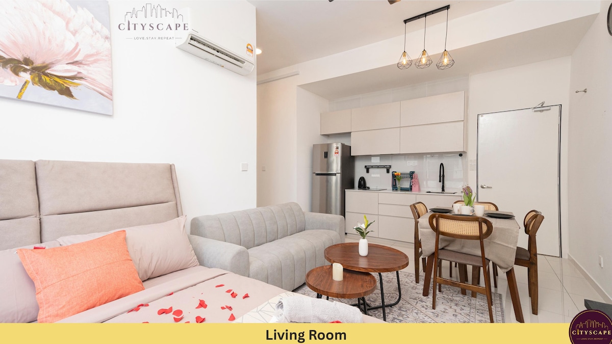 Private Luxury Suite | Walk to KSL Mall • Walking distance to KSL Mall • MUJI-inspired minimalist design • Private Jacuzzi for relaxation • Immersive cinema with surround sound • King-size bed with 12-inch premium mattress • Plush high-end sofa Designed for comfort, privacy, and quiet luxury. Ideal for couples, special occasions, or guests seeking a refined and uninterrupted stay in the heart of Johor Bahru.