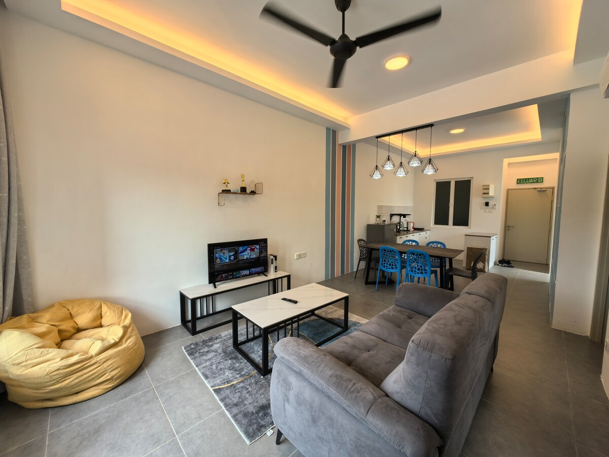 SweeHome se encuentra en el corazón de la ciudad de Kuah, Langkawi con una mezcla de estilo contemporáneo. Nuestro apartamento se está convirtiendo en uno de los alquileres vacacionales familiares con mayor demanda. Puede alojar a 6 adultos con todas en camas cómodas. Con 3 dormitorios, 2 camas queen, 2 camas individuales, 2 baños, 2 baños con suministro de agua caliente y un amplio salón y comedor, te trae la encantadora casa y la sensación familiar. Nuestro apartamento luminoso, ventoso y tranquilo es tu opción perfecta para una estancia corta a media en Langkawi.