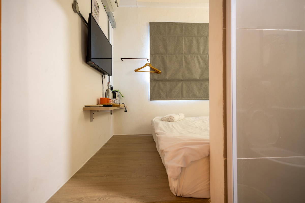 A cozy Japanese-style tatami room designed for simplicity and comfort. Ideal for solo travellers or couples looking for a clean, efficient space. Features warm lighting, minimalist décor, and a comfortable Queen Tatami bed.Amenities:Air-conditioning, WiFi, private bathroom, rainfall shower, smart storage, 32” TV.