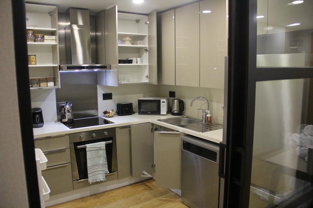 Aprovecha al máximo tu visita a Estambul en una espaciosa suite de 78 metros cuadrados con muebles elegantes, diseño moderno y muchas comodidades para el hogar. Perfecto para viajeros de negocios y de placer, los huéspedes pueden relajarse en la gran sala con sofá y hacer uso de la cocina pequeña totalmente equipada con placa calefactora y microondas y electrodomésticos de calidad que incluyen lavadora, secadora y minibar.