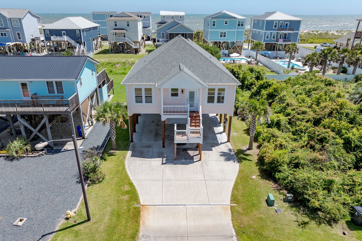 ¡BIENVENIDO a la casa de playa OASIS! ¿Listo para las mejores vacaciones? El Oasis cuenta con una piscina de agua salada de tamaño completo, chimenea, bar tiki, parrilla y TV al aire libre. ¡Esta belleza del patio trasero tiene todo lo que podrías desear! Ubicado a solo 7 manzanas del mar en Carolina Beach, pasa los días en la arena y las noches bajo las luces de cuerda alrededor de la piscina, el bar o la chimenea. Nuevo anuncio con hermosos muebles. Piscina climatizada durante la temporada media bajo petición con cargo adicional.