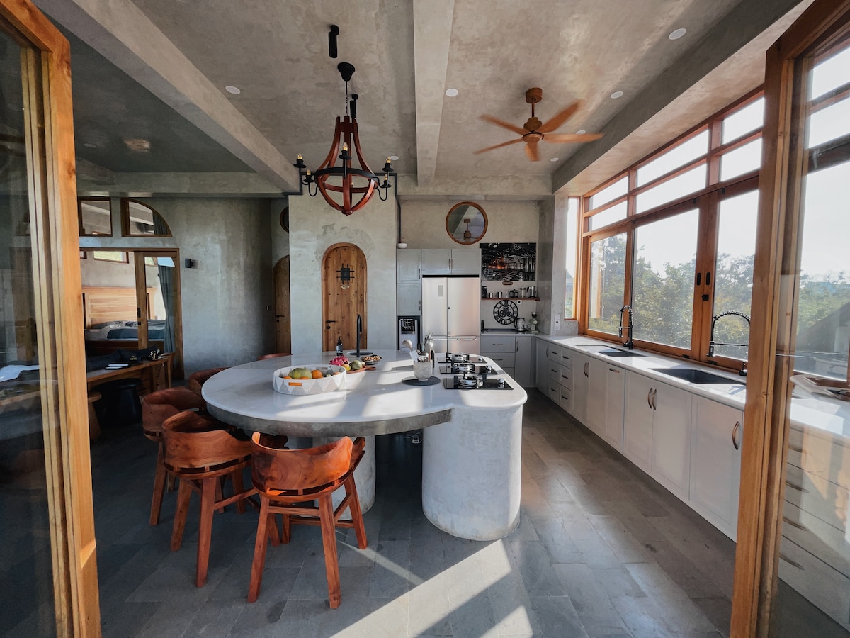 In the beautiful country of Uluwatu 1.2 Km to Padang Padang beach, our property seats in 2.000 m2 land, silently tucked into the forest, regardless of the Uluwatu building explosion. Just walking distance to "Ulu Island Padel" best surfing beaches, restaurants and amenities of the area This72 m/2 bungalow is equipped with 2X2 m bed, working desk, Starlink internet connection, a walk-in wardrobe, on-suite bathroom, a full equipped kitchen on a terrace facing the gardens, Smart TV, FAN, AC