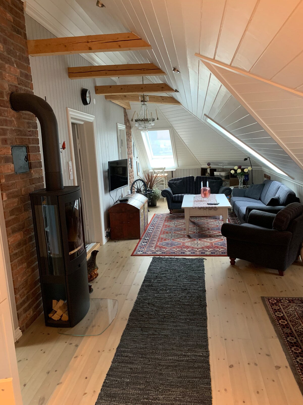 Acogedor loft en una venerada casa suiza en medio del centro de la ciudad de Kviteseid. Kviteseid es un hermoso pueblo situado junto al canal de Telemark. Desde el departamento tienes vistas al fiordo y a la idílica ciudad Kviteseid. Durante los meses de verano puedes ver el barco del canal Victoria en el muelle en Kviteseid. Se encuentra a 20 minutos en auto del campo de golf Vrådal y del centro alpino Vrådal con 15 pistas y 5 ascensores. Grandes áreas de senderismo de verano e invierno. Buenos champiñones y bayas cercanas.