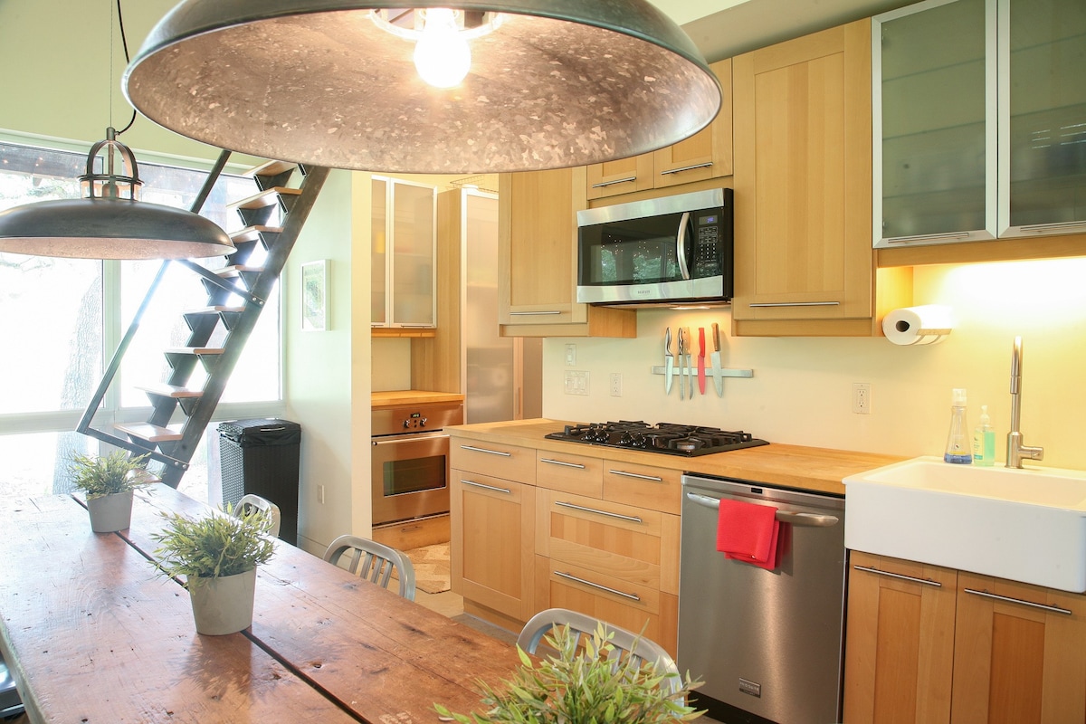 ¡La Casa Austin! Ubicada en 1,2 acres, camino privado con antiguos robles maduros, estrellas y una vista del atardecer desde una terraza en la azotea. La piscina está climatizada la mayor parte del año. (Sin diciembre, enero ni febrero) Con una privacidad increíble y vistas a Hill Country desde el lote en el cinturón verde. Se renovó toda la casa: pisos de vinilo de bajo voltaje (LVP), una cocina y electrodomésticos espectaculares, espacios acogedores y baños de lujo. ¡Ubicado cerca de lugares de Hill Country como Chapel Dulcinea, The Arlo, Salt Lick, viñedos, destilerías y mucho más!