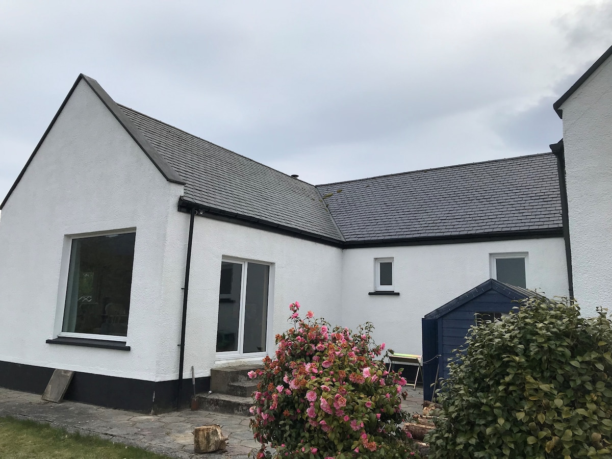 3 minutes from the ferry. You have access to Camard's own private estate of 87.5 acres of pastureland, Oak woodlands & waterfalls! Wild beachs within walking distance through the woods. Breathtaking views over the water to the mountains of Knoydart, which you may enjoy from the lounge or deck. Unwind, & completely digital detox, in one of the U.K,s most awesome, tranquil and beautiful locations. Forest tracks opposite. Please enquire 48 hrs in advance re booking a BBQ dinner if required. Relax