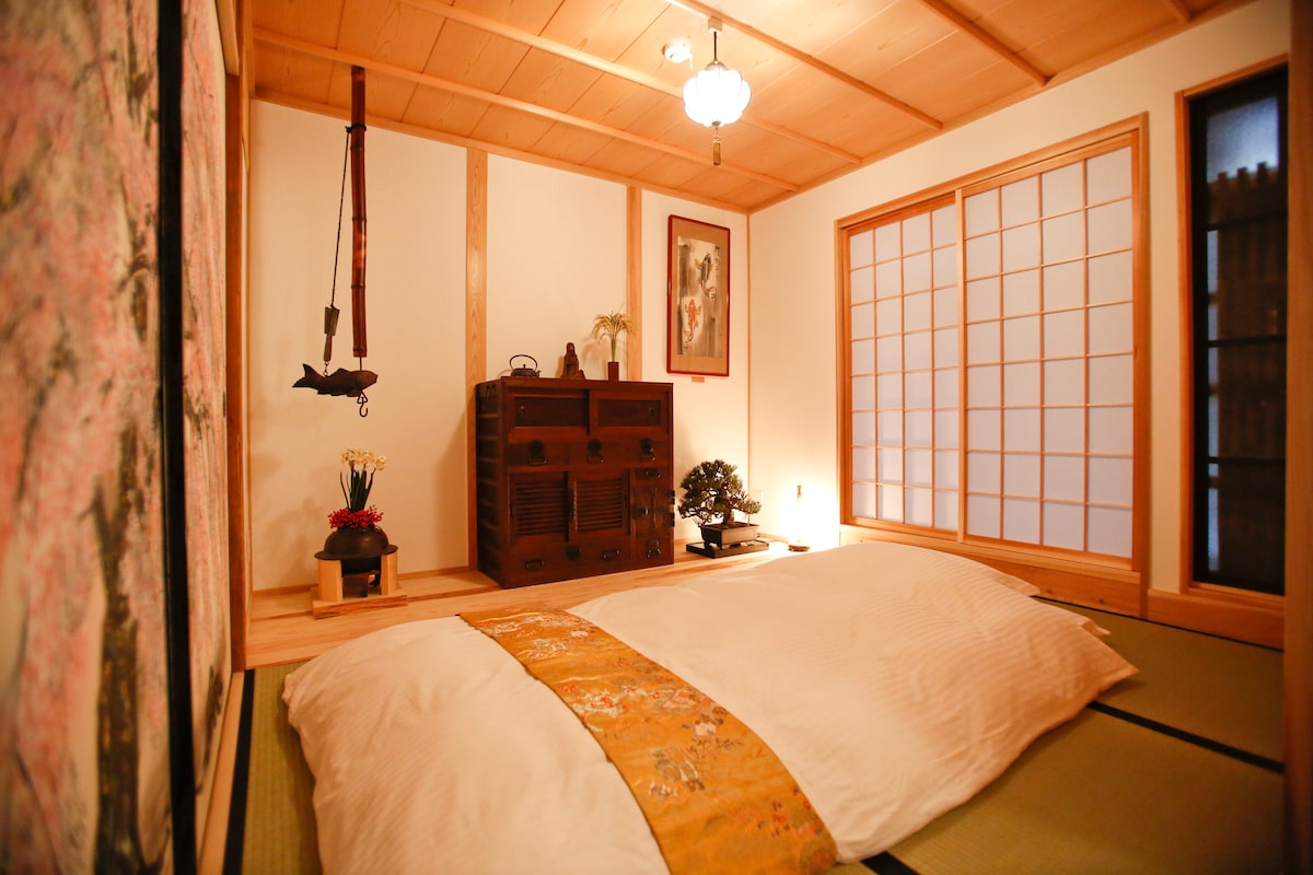 The beautifully refurnished 100-year machiya enjoys all the charm of traditional and modern Japan spirit: tatami, sliding wooden doors with wa-shi partition, private garden, along with selected luxurious modern comfort. Located inside the tranquil area of Chomyo temple while only 5 mins' walk from subway/Keihan Sanjo sta., we promise you a fully immersive Kyoto experience. Also convenient to walk to Gion and Heian Shrine. Supermarkets and amazing restaurants in neighborhood at your service.