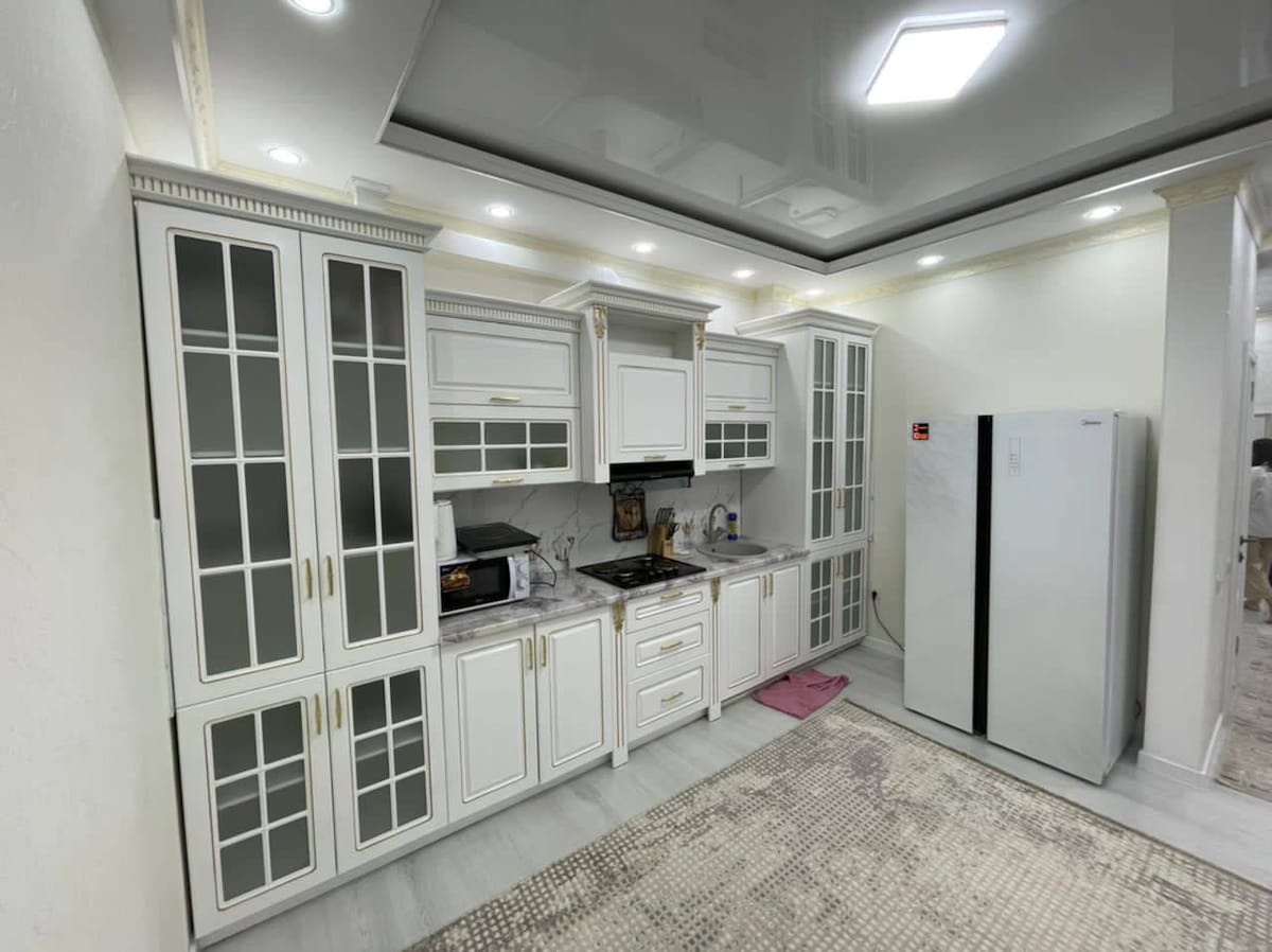 Disfruta de alojarte en un apartamento elegante. Apartamento absolutamente nuevo, luminoso, espacioso en un nuevo complejo residencial con una nueva renovación. Acogedor dormitorio con una cama grande (180*200) con un colchón ortopédico. Cocina-sala de estar con todo lo necesario para una estancia cómoda. Las ventanas ofrecen una hermosa vista de la ciudad y las hermosas montañas. Zona para caminar a lo largo de toda la zona con parques, tiendas,bares, clubes nocturnos, restaurantes y cafeterías. A 10 minutos a pie de la plaza central Ala-too.