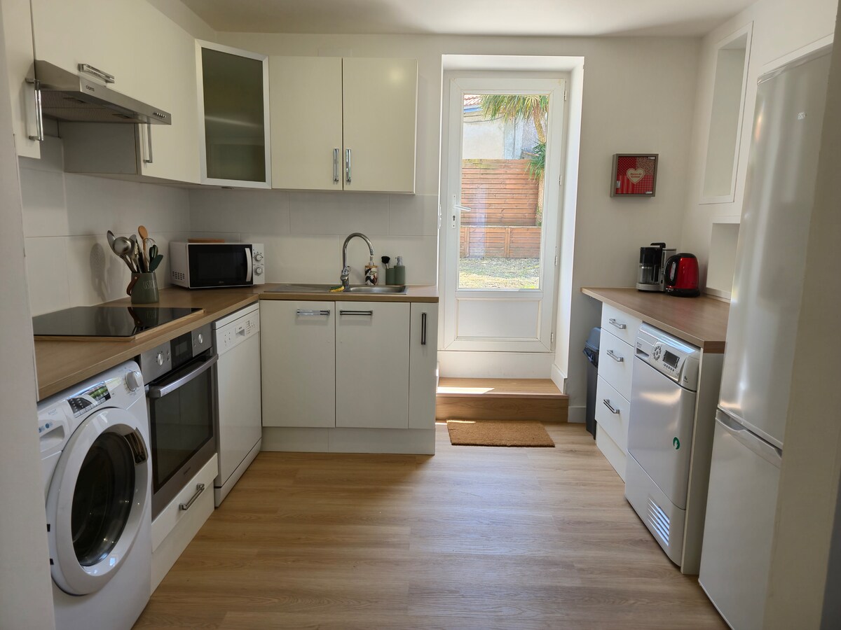 Dans notre maison classée balnéaire, à proximité du centre de Pornichet et de sa gare, un appartement, avec son entrée indépendante, vous attend. La chambre comprend un lit double, une penderie et donne sur une grande terrasse et un jardin. La pièce centrale dispose d une cuisine avec les éléments et équipements permettant d être totalement autonomes. La salle de douche / wc vous est exclusivement réservée. Vous pourrez également profitez des équipements extérieurs : salon, chiliennes...