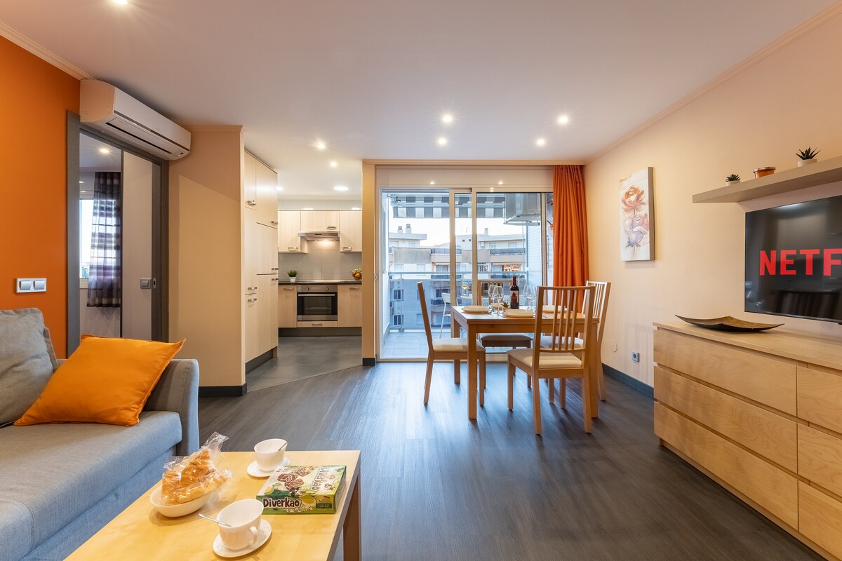 Apartamento luminoso y acogedor, muy bien equipado (Wifi, AC, amplio balcón, etc..) Dispone de 2 piscinas comunitarias en la azotea del edificio con vistas espectaculares al mar y 360° de todo Salou. A 2 minutos andando de la playa. Muy bien hubicado, a pie del edificio encontraréis: - Supermercado - Parada de autobus - Parque municipal - Restaurantes, tiendas, ocio... - Av/ Carles buigas (peatonal)