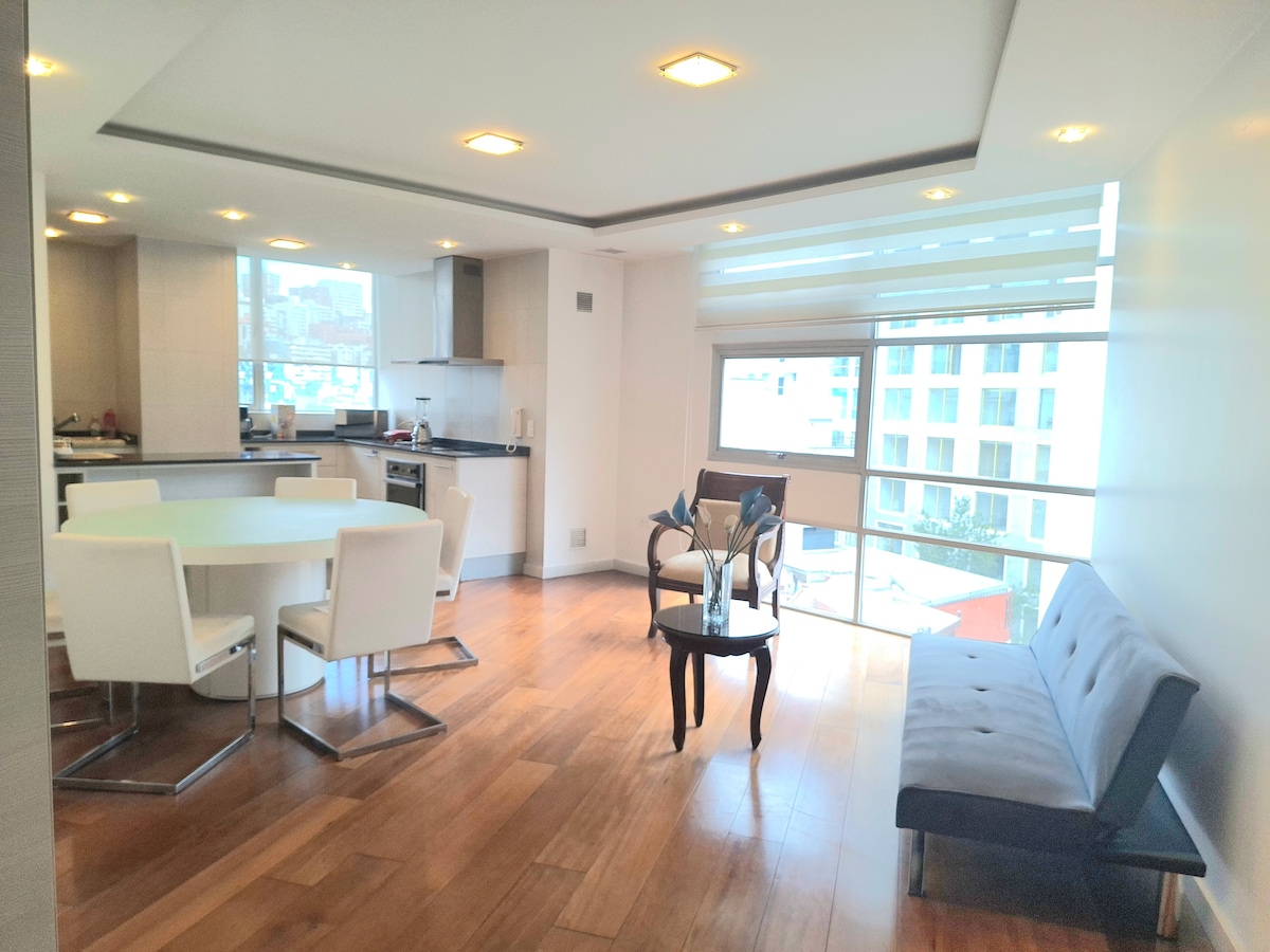 Luxury 3BR apartment, La Carolina, sleeps 9. Prime Republica del Salvador location, safest & best in the city, steps from QuiCentro Mall, parks, dining & nightlife. Airport pickup, driver, car rental available. As licensed tour operators with 13 years experience we arrange unforgettable excursions all across Ecuador. Enjoy spa treatments & private chef service right at home. Stylish comfort, unbeatable convenience—your perfect Quito home and stay awaits. Tri Lingual Canadian Ecuadorian Hosts.