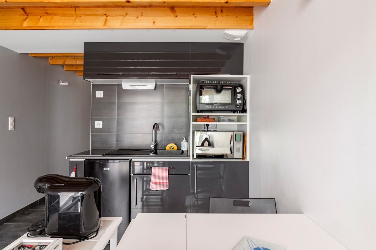 Disfrute de un alojamiento tranquilo y elegante. Esta casa de 35 m2 le traerá todas las comodidades: en la planta baja una hermosa sala de estar con su cocina equipada y equipada con vistas a una terraza privada, un inodoro y lavadora. Arriba: un dormitorio con una cama de matrimonio, una ducha, armario, escritorio auxiliar Se puede proporcionar ropa de cama y toallas, pero solo bajo petición. Acceso wifi gratuito. Aparcamiento gratuito. Prestamos especial atención a la limpieza.