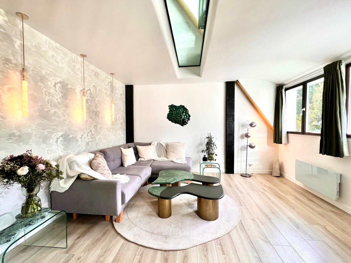 Increíble dúplex de arquitecto: 60 m² con un diseño único, en una residencia muy tranquila con vistas al parque de un castillo. En el corazón del bosque de Trois Pignons. El sueño de♡ un escalador | excursionistas | naturaleza ♡ A ★ pocos minutos a pie de los lugares de escalada más emblemáticos de Fontainebleau. ★ ☑︎ Gran comodidad: ropa de cama y equipamiento de alta gama. ☑︎ Muy luminoso. ☑︎ Aparcamiento gratuito. ☑︎ Bosque a poca distancia a pie. ☑︎ Ideal para nómada digital, viaje de negocios 5'➤Tiendas. 15'➤Fontainebleau/INSEAD