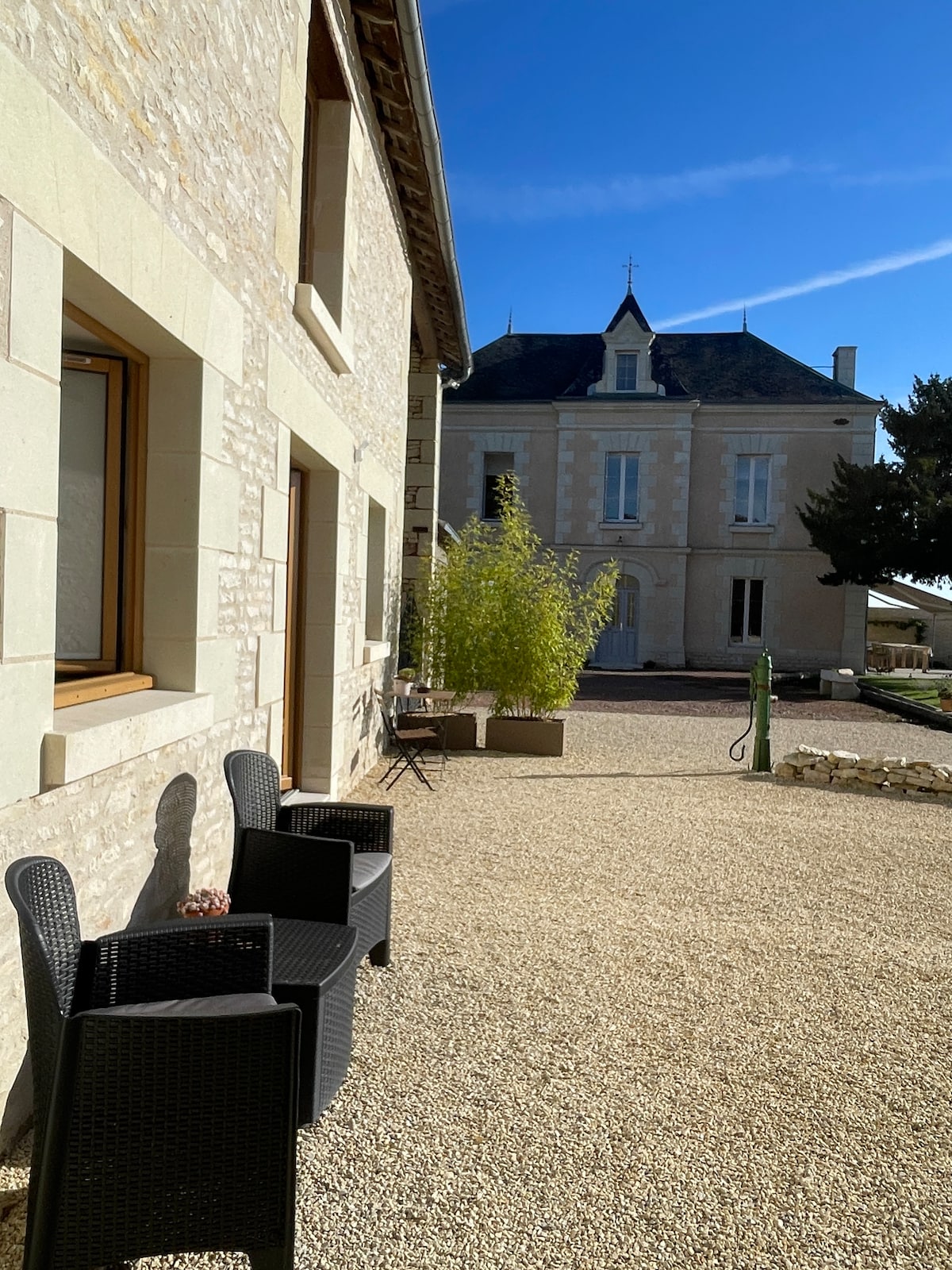 Descubre un edificio de piedra recientemente renovado donde el lujo se combina a la perfección con la naturaleza y ofrece un hogar lejos de casa para todos los miembros de la familia. Disfruta de unas vacaciones tranquilas en la serena campiña de Dercé, Francia. Con un telón de fondo de impresionantes paisajes, nuestra propiedad cuenta con un amplio jardín cerrado y una piscina, ideal para familias y entusiastas de las mascotas. Nos esforzamos por ofrecer una estadía inolvidable, lo que permite a los huéspedes relajarse por completo y reconectarse con el mundo natural.