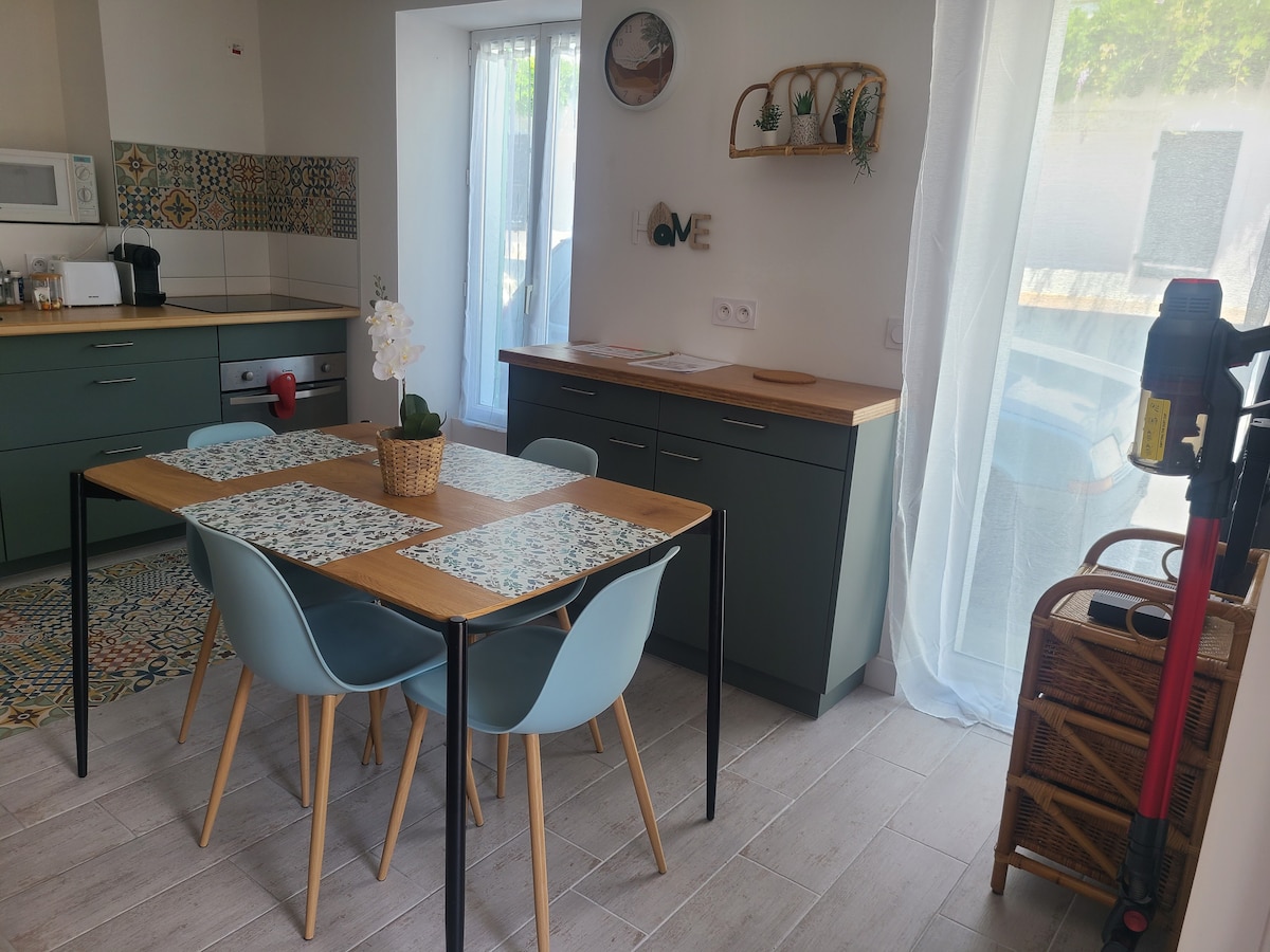 Charmante petite maison pour 4 personnes idéalement située sur la commune du château d'Oléron. Elle dispose de: *2 chambres à l'étage: un lit adulte, 2 lits simple. lit bébé *salle d'eau: douche, table à langer et baignoire bébé, sèche cheveux *pièce de vie avec canapé, tv netflix, WiFi *cuisine equipée: refrigerateur/congelateur, nespresso, grille pain, bouilloire, micro onde, four, plaque induction *terrasse à l'abri des regards avec table et chaises, parasol, plancha à gaz *WC indépendant