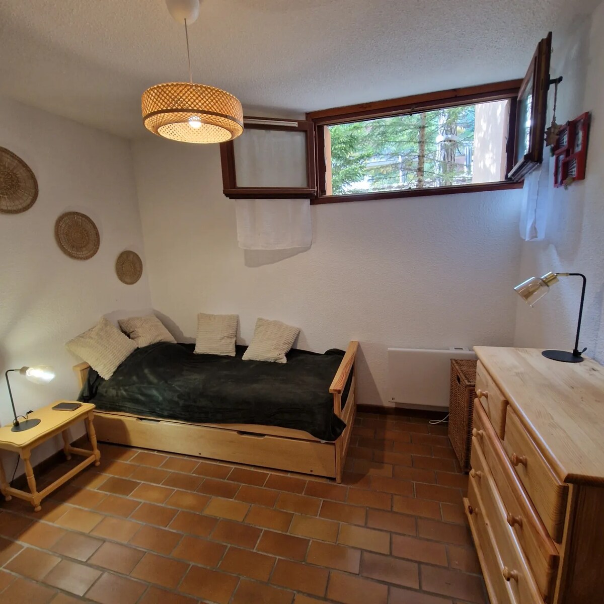 Studio tout équipé situé au 1er étage, parking gratuit au pied de la résidence. Vous trouverez une banquette lit en 160*190 cm et également un lit superposé en 70*190cm. La cuisine est équipée avec lave linge, sèche linge, lave vaisselle, plaque induction, micro-onde et réfrigérateur. Nombreux rangements. La salle de bain est entièrement rénovée avec baignoire et sèche serviette. Toilette séparé. La loggia vous permet de profiter de l'extérieur avec vue sur les montagnes.