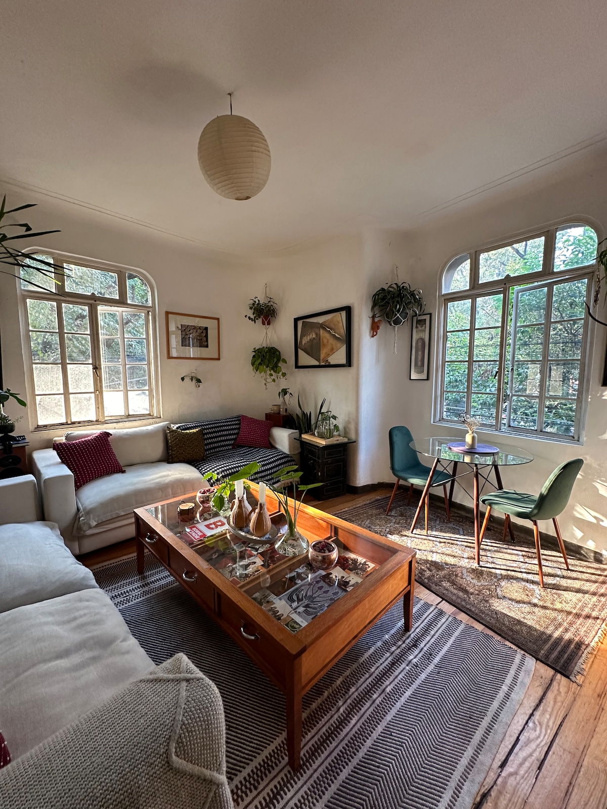 Casa México esta ubicada en una zona estratégica y maravillosa ya que se encuentra en el corazón de la colonia condesa enfrente del Parque México. Esta zona es conocida por sus preciosas calles arboladas, grandes restaurantes, cafeterías, tiendas de todo tipo y galerías. La colonia es céntrica ya que es fácil llegar a varias zonas interesantes como La Roma, Polanco y Escandón. Asimismo esta zona es conocido por su ambiente familiar y bohemio que se viven todos los días en las calles. El departamento esta ubicado en un segundo piso arriba del Café Toscano donde podrás disfrutar de un gran desayuno incluido. En la azotea podrás disfrutar de una vista sensacional hacía las copas de los arboles. El departamento cuenta con cocina equipada, sala, comedor y baño. Asimismo cuenta con servicio de Limpieza incluido There is a shared rooftop where guest can enjoy a great view to the park and sit down to work or hang out. I am available 24/7 through the app or Whatsapp in order to solve any doubts from guests. Zona tranquila, arbolada llena de restaurantes, cafeterías, parques y galerías. La mejor opción para moverse por la zona es caminando, con bicicleta o uber.