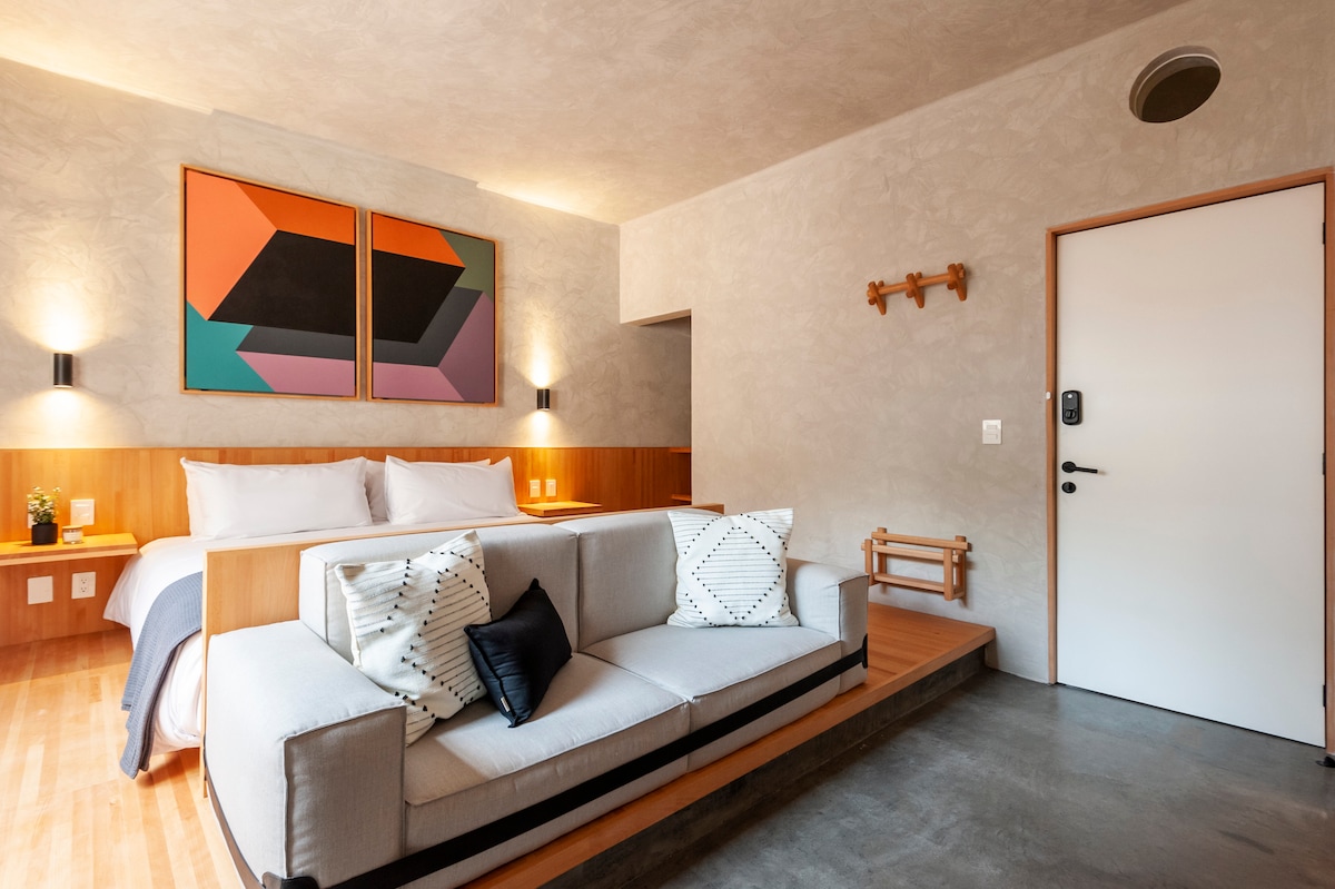 acogedora suite de 60 m2 ubicada en un singular conjunto de casas construidas en 1905 en havre, una de las calles más exclusivas y con mejor oferta gastronómica de la colonia juárez. la casa fue restaurada por completo añadiendo elementos contemporáneos a su arquitectura típicamente porfiriana. el espacio ha sido amueblado con piezas originales estilo mid century modern y otros hallazgos de nuestras busquedas por los anticuarios de la ciudad.