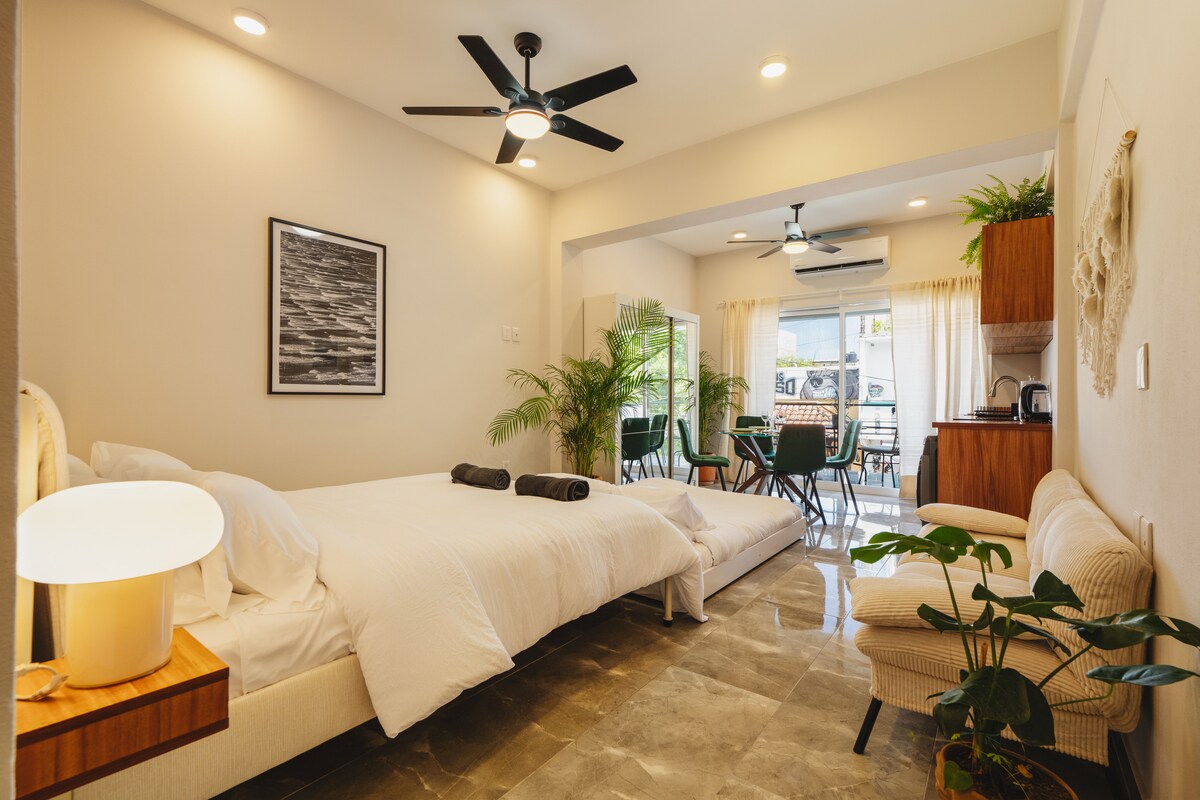 Escápate a este loft moderno y acogedor en el centro de Bahías de Huatulco. A pasos de la playa, el mercado y los mejores cafés. Ideal para parejas, familias o amigos: cama queen, matrimonial y sofá cama. Cocina equipada, A/C, WiFi rápido y baño privado. Perfecto para relajarte tras un día de sol y mar. ¡Vive Huatulco con estilo, comodidad y excelente ubicación!