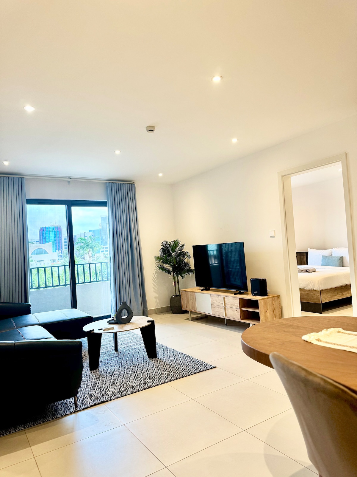 Your extraordinary Accra experience begins here. Book now and see why guests say ‘home away from home only gets better.’ Access to rooftop pool and gym. This stylish unit in Airport Residential offers hotel-level comfort. Enjoy a queen bed, vibrant yellow sofa, smart TV, fast Wi-Fi, cool AC, kitchenette, and a calm balcony. Walk safely to Airport City, restaurants, malls, cafés and Roman Ridge. 5-10 mins drive to airport. Perfect for business travelers, couples, solo guests and weekend escapes