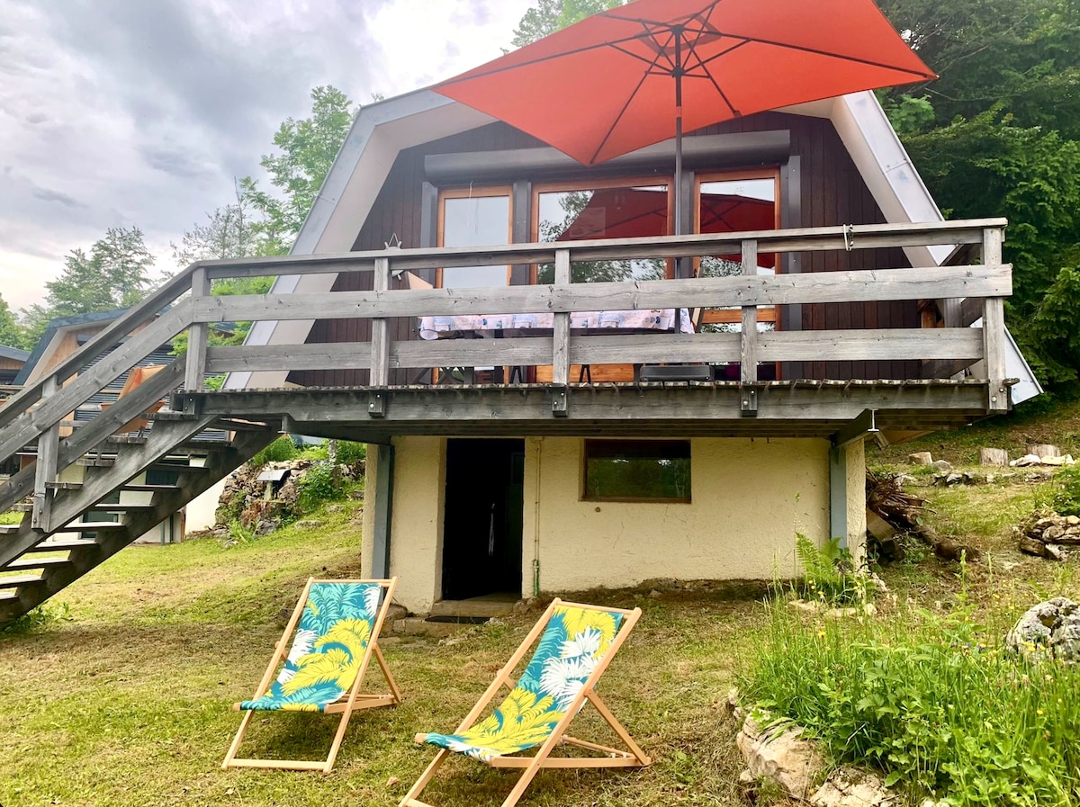 Vivez une expérience unique connectée à la nature dans un petit chalet insolite de 40m2 très bien équipé placé dans une copropriété calme où vos enfants pourrons jouer en toute sécurité. Idéalement situé dans la station des Rousses, sur les pistes de ski alpin des Jouvencelles. Nombreuses randonnées et piste de luge sur place. Baignade au lac à 10min. Local vélo et ski privé. Accès facile en voiture, parking gratuit déneigé. Sans linge. Ménage 25€.