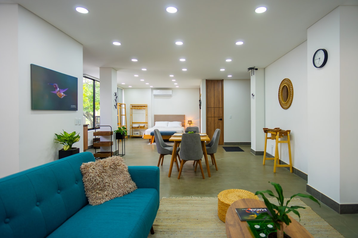 ** UNIDAD EXCLUSIVA EN ZONA TURÍSTICA ** Despierta rodeado de calma, arte y naturaleza en este elegante apartamento de 36 m² en Santa Teresita. Zona segura, edificio de lujo con spa (jacuzzi, turco, sauna), piscina, gimnasio y a pasos caminando del boulevard del río. Perfecto para 2 personas, con cocina equipada, WiFi veloz de 350 mbs, dos A/A en la habitación, balcón. A pasos del Zoológico, el Gato del Río y La Tertulia. Relájate, explora y vive Cali con estilo.