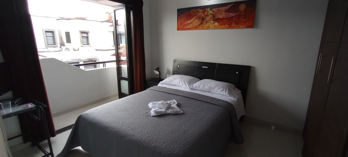 Lugar de descanso apto para dos personas, bien equipado, ideal para estancias largas. !!Ya cuenta con Aire Acondicionado!! Totalmente privado, todo en 1 solo espacio acogedor, con puerta directamente a la calle, fácil acceso. Cuenta Cocina, lavadero, Wifi, nevera, comedor, baño, suministro de agua las 24 horas (Reserva de 2.000L), en fin, lo necesario para una estancia placentera. Nota: Parqueadero gratuito!!